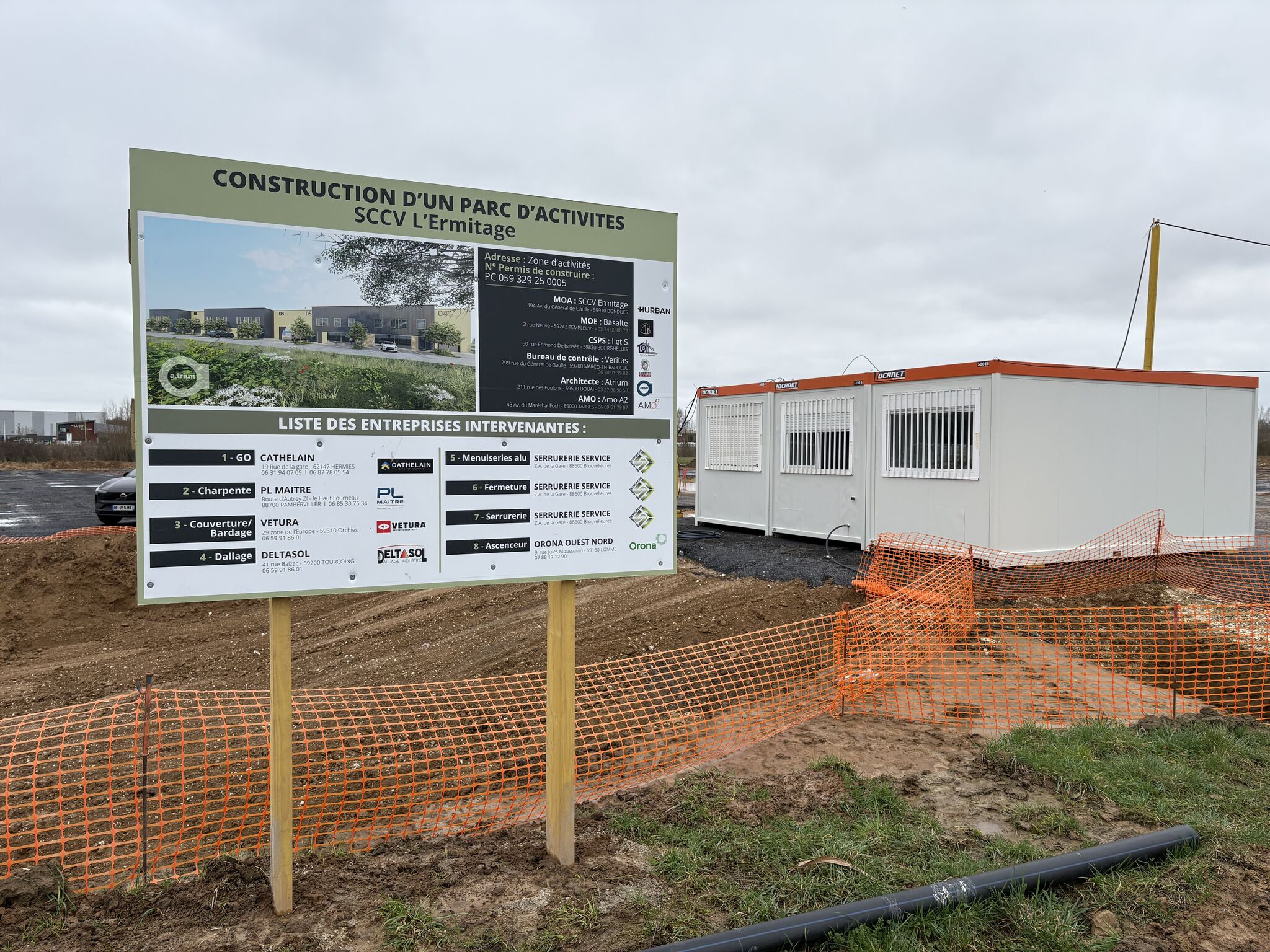 Construction d’un parc d’activités composé d’un bâtiment de bureaux en R+2 et de cellules d’activités.